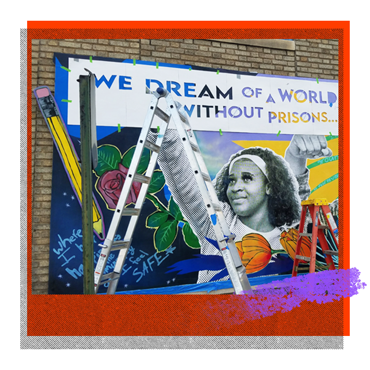Performing Statistics worked with Rise for Youth and Code VA to create a multi-media mural envisioning the joy, freedom and power made possible by a world without youth prisons, across the street from the place department in Richmond, VA.