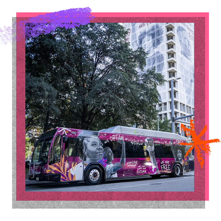 Freedom Constellations is an interactive mural, city hall art installation, film & city bus that imagine a world where all youth have what they need to thrive and stay free.